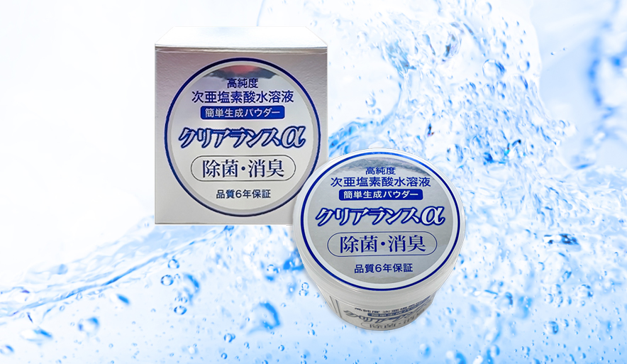 A クリアランスαはパウダー状になってますので、6年間の保管が可能です。パウダーから次亜塩素酸水溶液を作ったときには、酸素に触れると水に戻り紫外線にも弱いので、保管するときは暗所で密閉空間をおすすめします。希釈した次亜塩素酸水は保管方法にもよりますが、3ヶ月間ほど保管が可能です。ただし、1週間以内にお使いいただくことで高い効果を発揮できますので、短期間でお使いください。