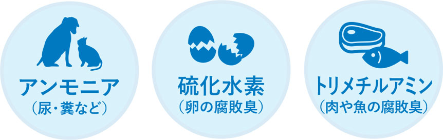 キッチン周りの生ごみやペットのトイレなどの匂いの主な原因はアンモニアや硫化水素、トリメチルアミンです。